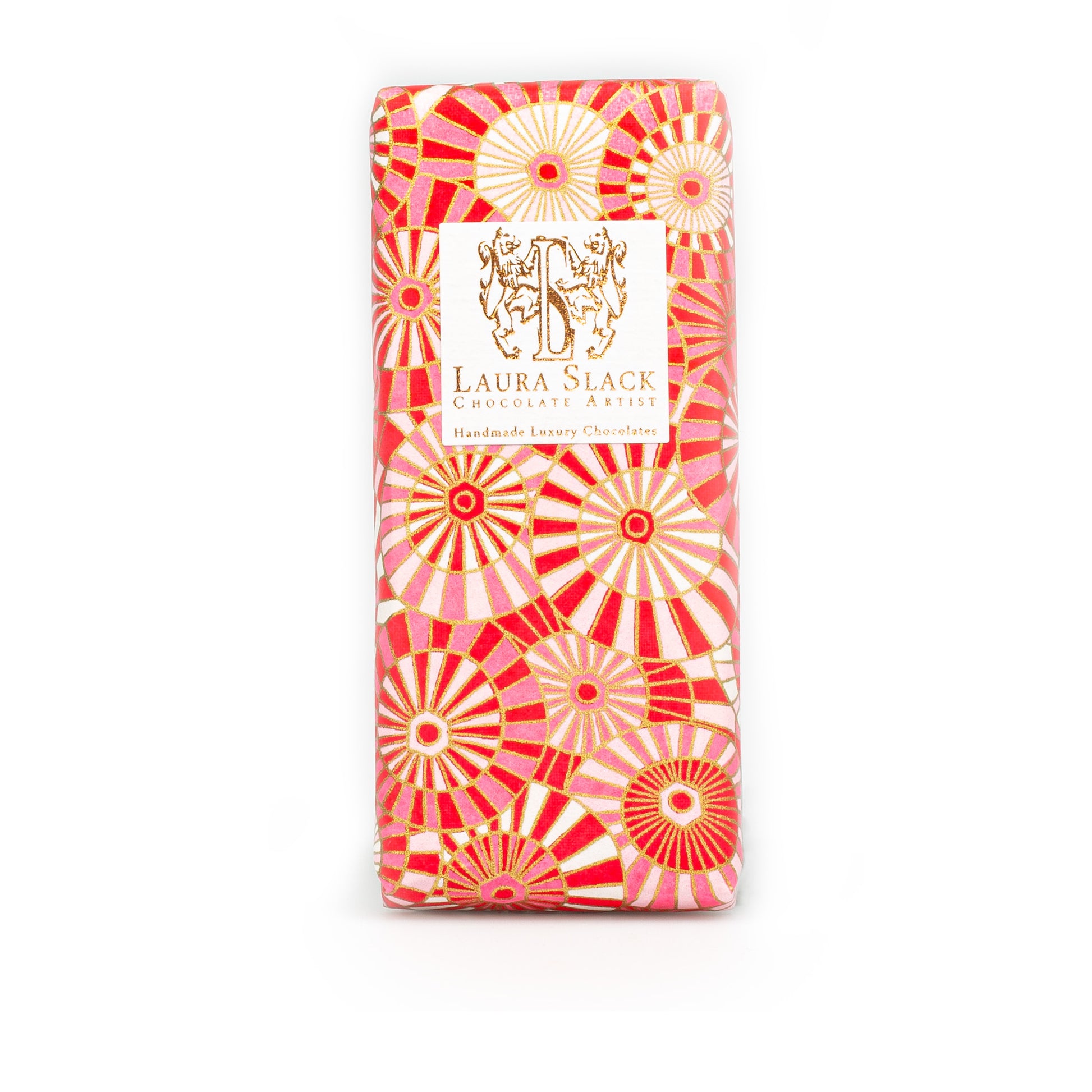 Handmade from the finest couverture chocolate, each bar is individually painted in luxurious colours. Hand wrapped in authentic Japanese Chiyogami paper, each bar offers a superlative visual and taste experience for the true chocolate lover.